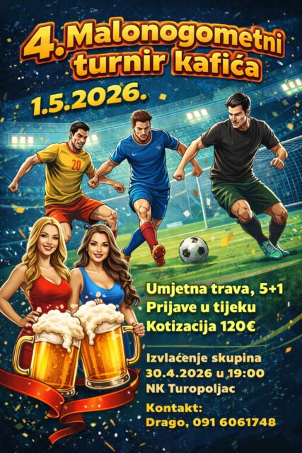 Četvrtu godinu za redom Kuče i Kneje bit će na Praznik rada domaćini sada već tradicionalnog Malonogometnog turnira kafića. Prijave za isti otvorene su do 30. travnja, kada će se u 19 sati u prostorijama Nogometnog kluba Turopoljac održati izvlačenje parova.